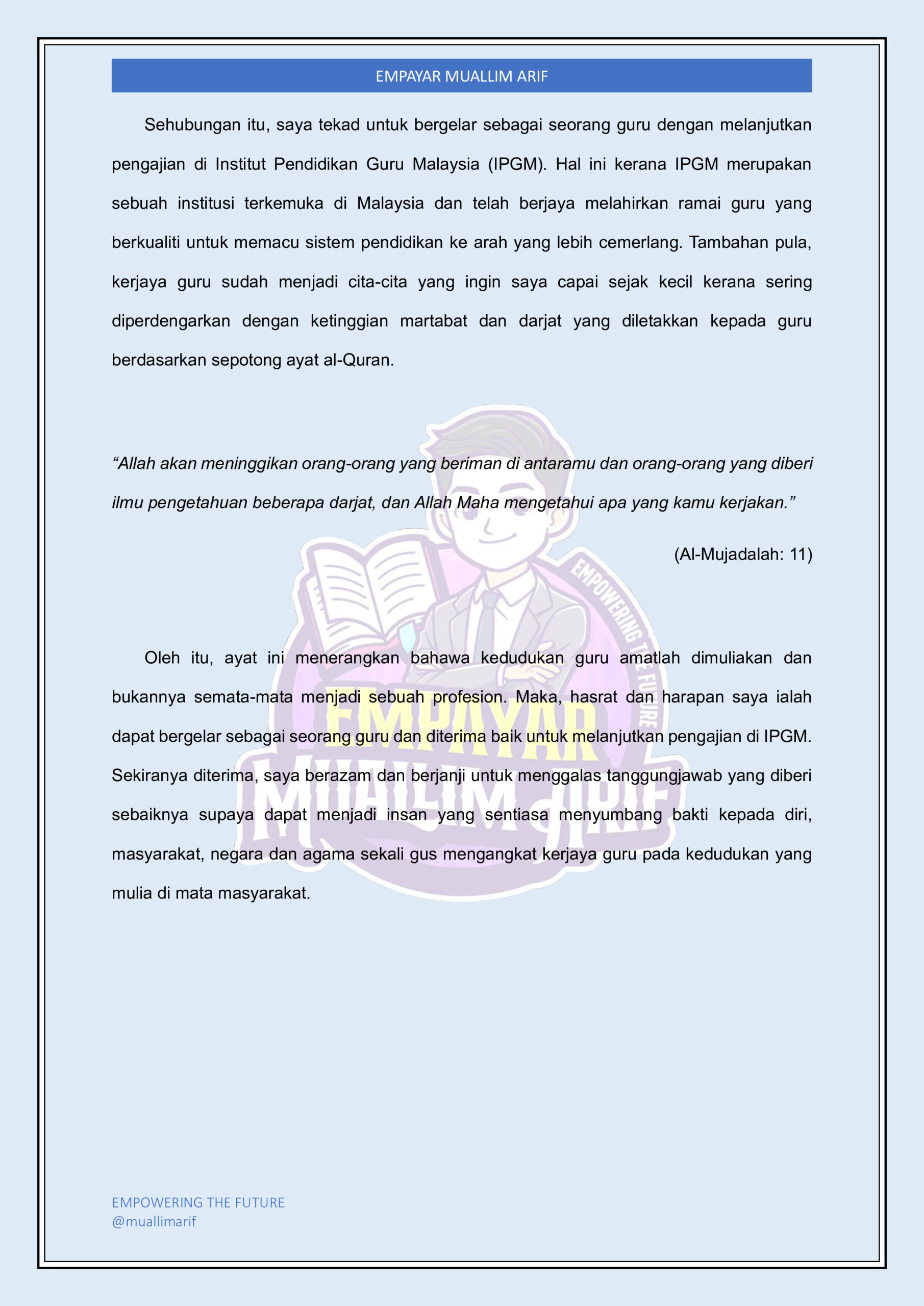 Copyright © Empayar Muallim Arif (001279798-A). All Rights Reserved.